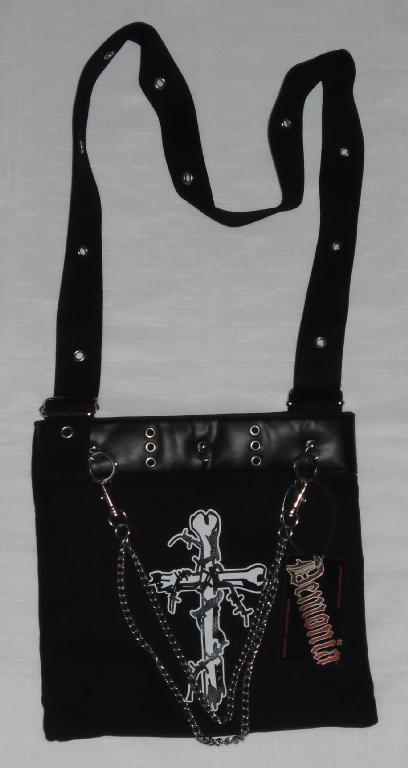 Black Canvas Bag, velco closure, inside zippered pocket and additional inside mobile pocket. Adjustable shoulder strap with metal o'rings.