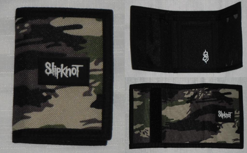 Nylon Velco Wallet, with inside zippered pocket and credit card slots.Metallica Red EmbroideredSlipknot Camo