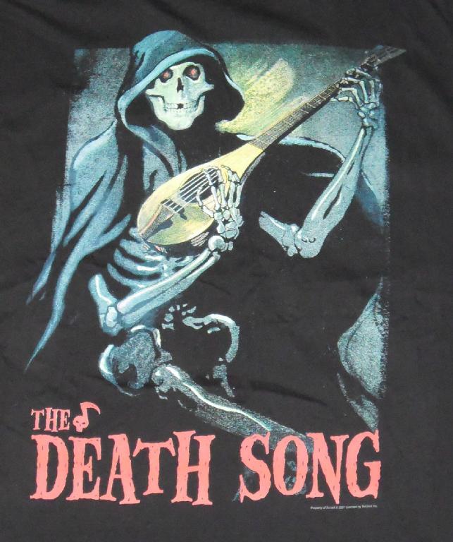 The Death Song, Short SleeveSizingX LargeBust = 57cm, Waist = 57cm, Hips = 57cm, Inside Sleeve = 15cm, Full Length = 80cmAll measurements are approximate