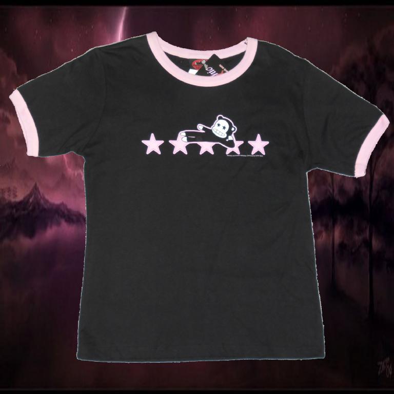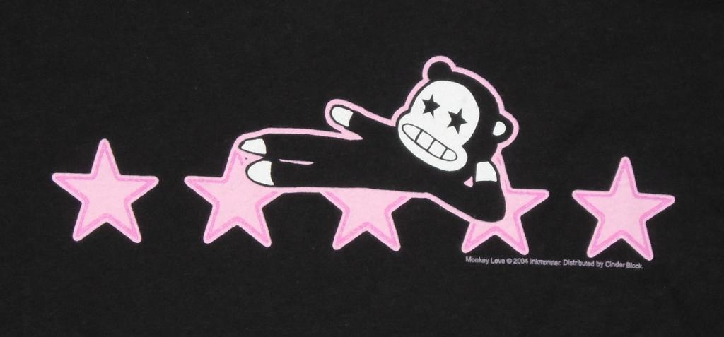 Monkey Love Stars with Pink Trim, Short SleeveSizingMediumBust = 41cm, Waist = 40cm, Hips = 41cm, Inside Sleeve = 10cm, Full Length = 56cmAll measurements are approximate