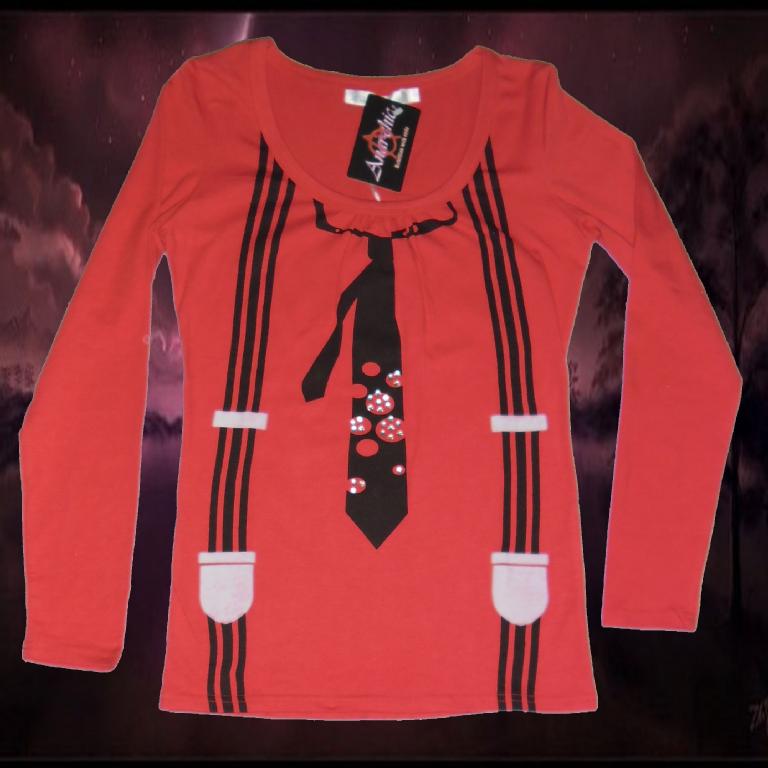 Red & Black Tie with DiamontiesSizing10Bust = 40cm, Waist = 36cm, Hips = 39, Inside Sleeve = 46cm, Full Length = 65cm12Bust = 44cm, Waist = 39cm, Hips = 43, Inside Sleeve = 48cm, Full Length = 66cmAll measurements are approximate