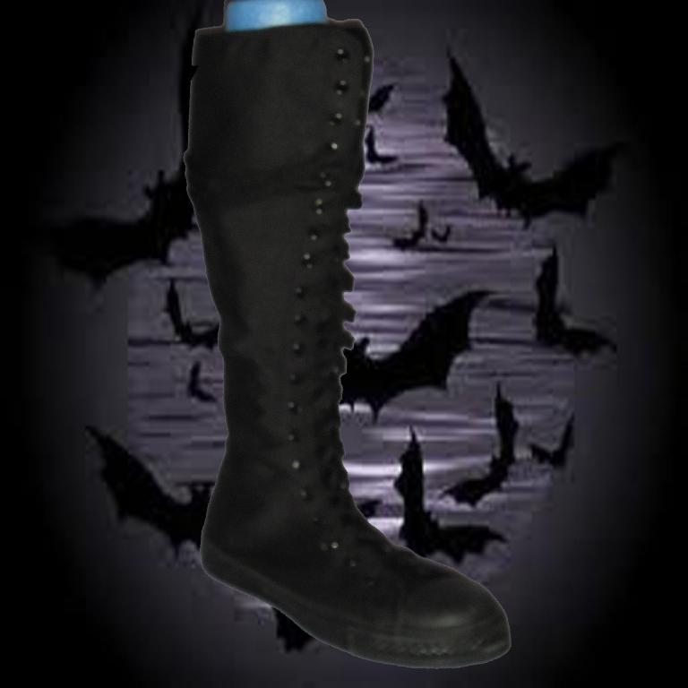Knee-Hi Black Canvas Boots Lace-up Front with Side Zip