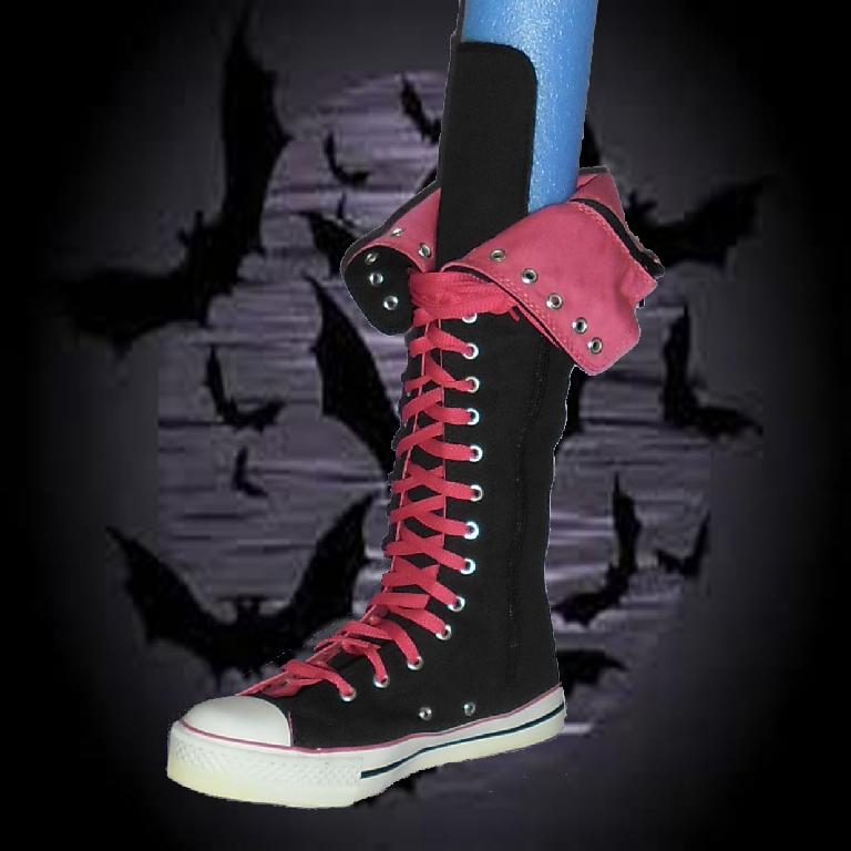 Knee-Hi Blk/Pink Canvas Boots Lace-up Front with Side Zip