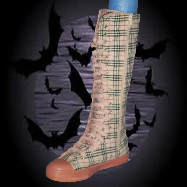 Knee-Hi Pink Tartan Boots Lace-up Front with Side Zip