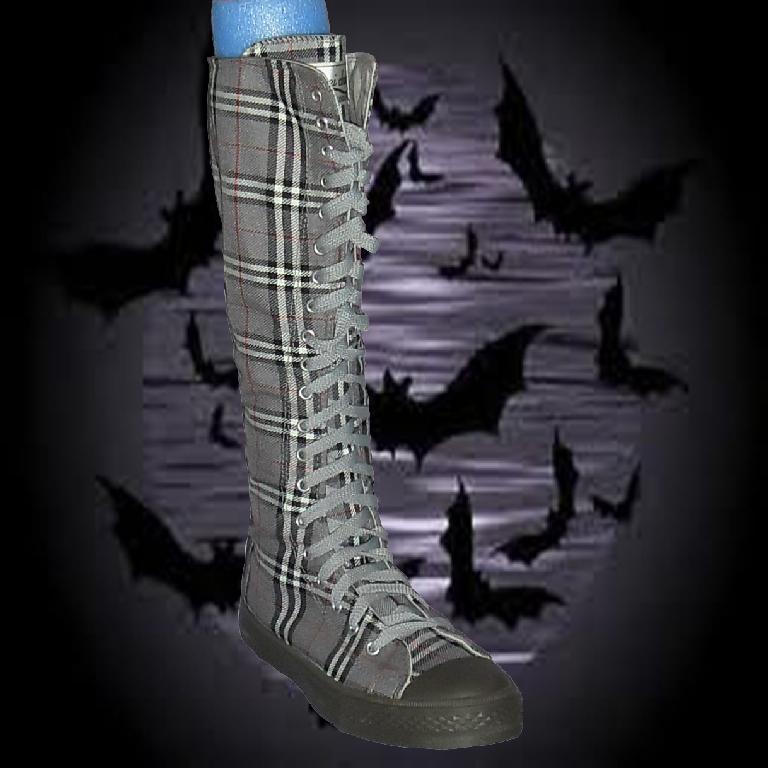 Knee-Hi Grey Tartan Boots Lace-up Front with Side Zip