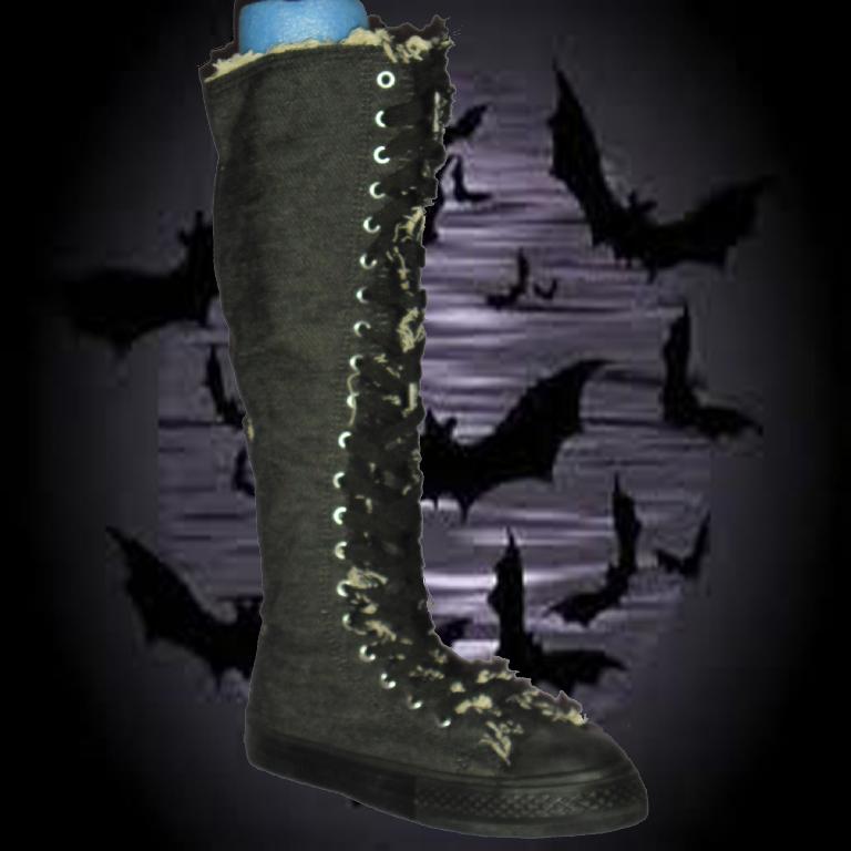 Knee-Hi Grey Denim Boots Lace-up Front with Side Zip