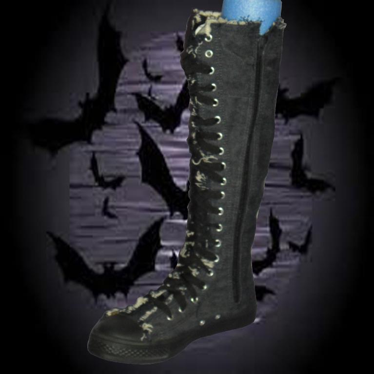 Knee-Hi Blue Denim Boots Lace-up Front with Side Zip