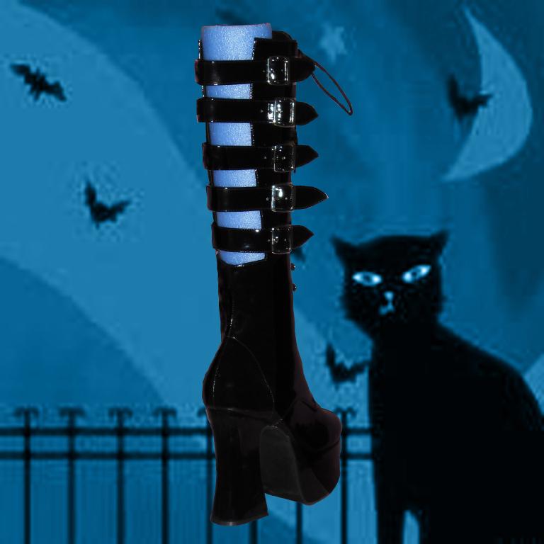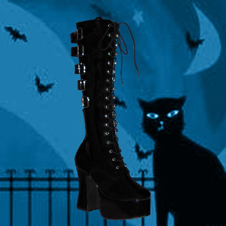 Slush-230, 4¾” 5 Buckled Calf Platform Blk Pat Knee Boot