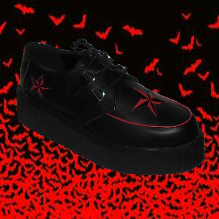 Creeper-404, 2” Platform Black Polyurethane Shoe with Red Nautical Stars