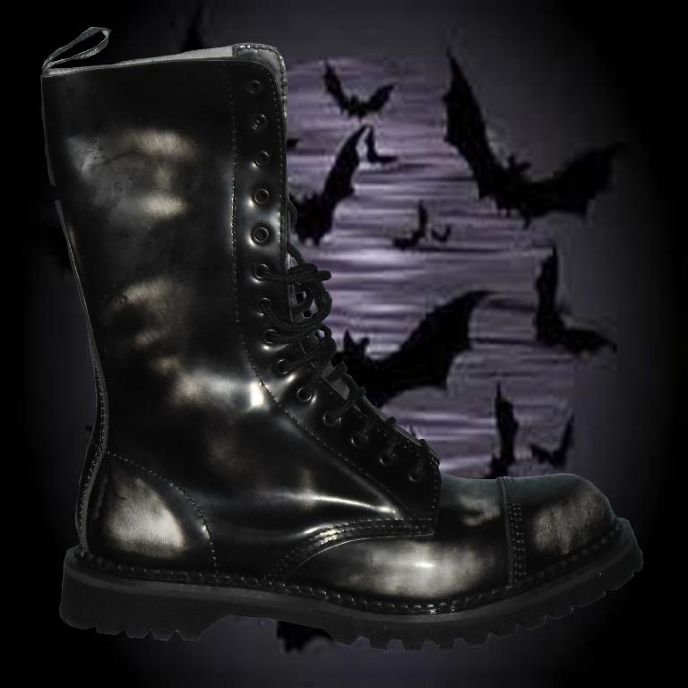 Rocky-14, Blk/Wht Leather Steel Toe 14 Eyelet Calf Boot