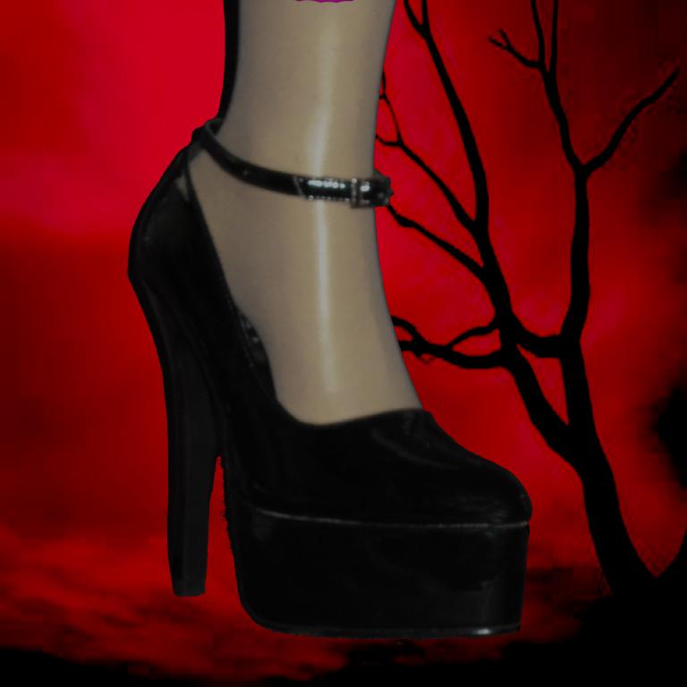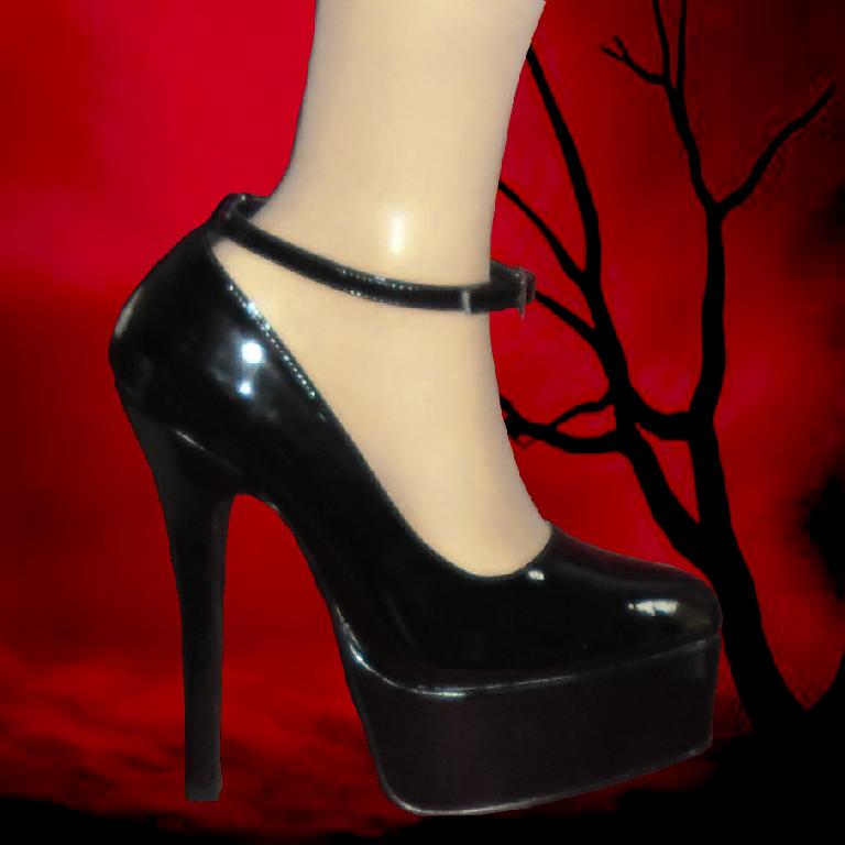 Revenge-13, 6¼” Heel Black Pat Platform With Ankle Strap