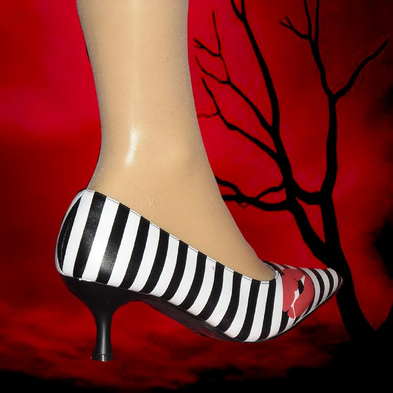 Black & White Stripe Pumps with Red Kiss