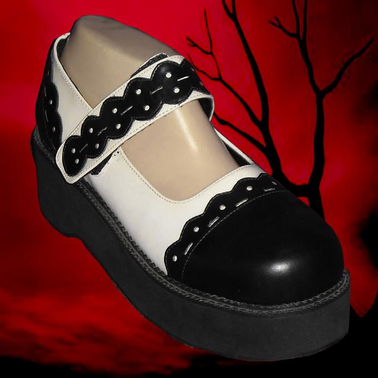 Shoes - Flory-08, 2” Blk/White Polyurethane Platform M/J