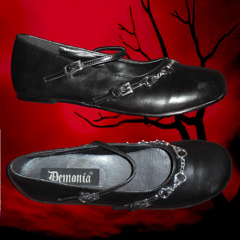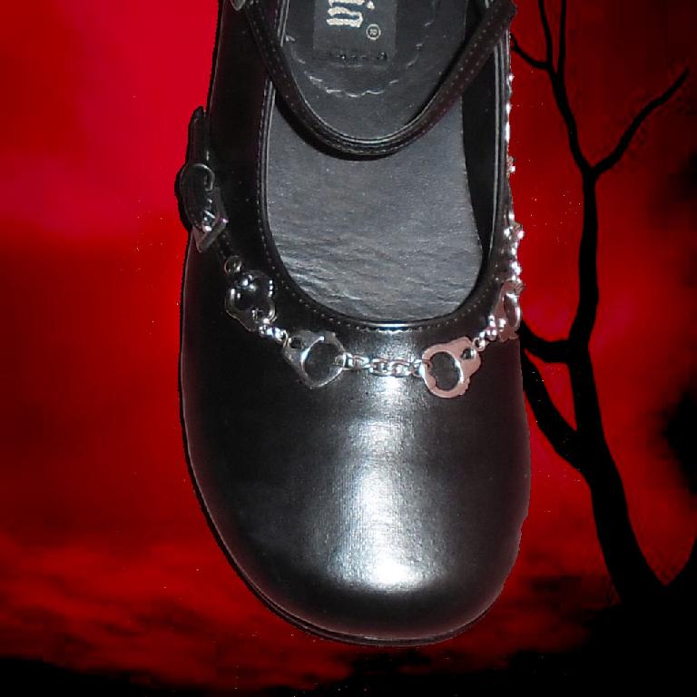 Daisy-12, Buckles & Handcuff M/J Black Polyurethane Flats