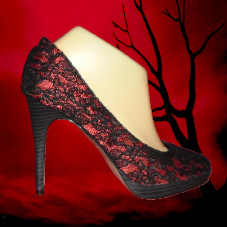 Bliss-30, 4¼” Stiletto Heel, Red with Black Lace Covering
