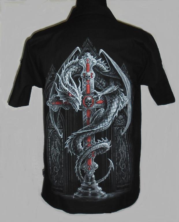 Altar Drake, Printed Front & Back with Pockets on Short SleevesSizingMediumBust = 54cm, Waist = 54cm, Hips = 54cm, Inside Sleeve = 15cm, Full Length = 73cmAll measurements are approximate