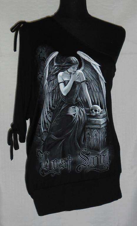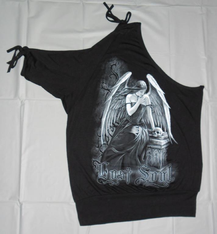 Lost Soul, Off the Shoulder with one Open ¾ Sleeve Sizing Medium Bust = 51cm, Waist = 48cm, Hips = 48, Inside Sleeve = 24cm, Full Length = 71cm Large Bust = 52cm, Waist = 49cm, Hips = 50, Inside Sleeve = 26cm, Full Length = 73cm All measurements are approximate