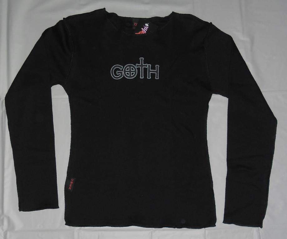 Goth, Long Sleeve with PrintSizingSmallBust = 39cm, Waist = 34cm, Hips = 37, Inside Sleeve = 49cm, Full Length = 59cmMediumBust = 45cm, Waist = 41cm, Hips = 42, Inside Sleeve = 50cm, Full Length = 65cmAll measurements are approximate