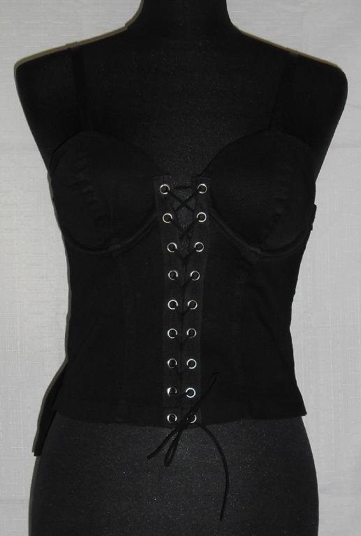 Lip Service, Lace-Up Bustier with Boning and Zip Off Rear FlapSizingLargeBust = 40cm, Waist = 36cm, Full Length (not inc straps & zip off tail) = 31cmAll measurements are approximate