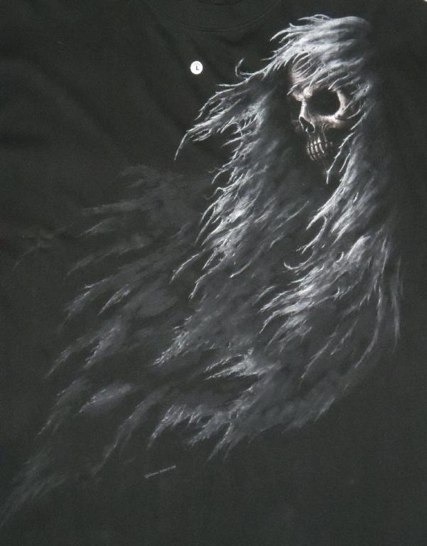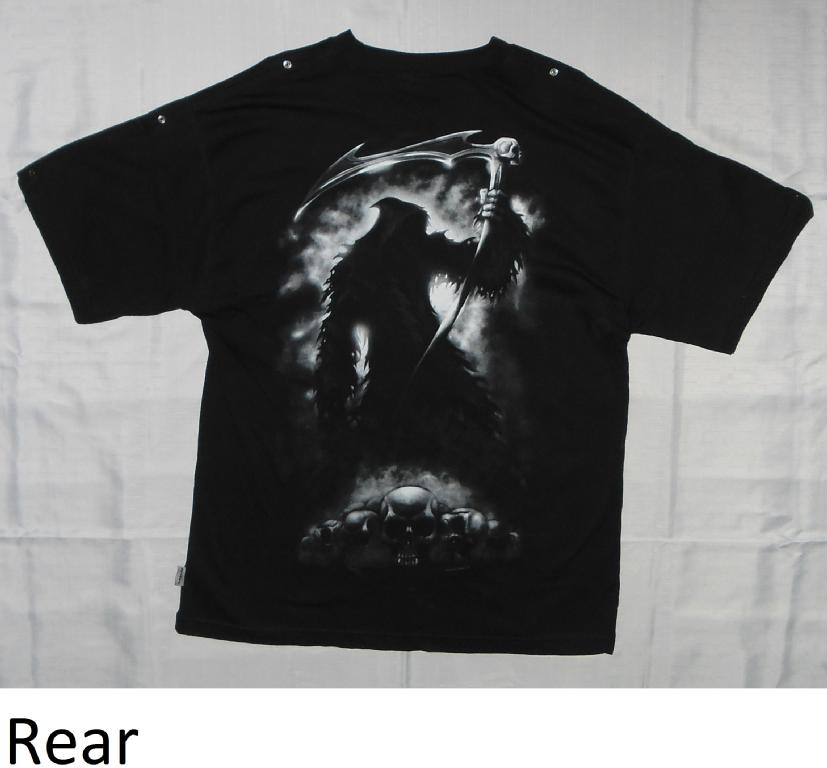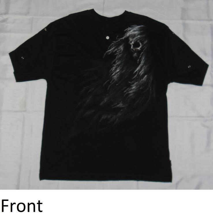 Shadow of Death, Short Roll SleeveSizingLargeBust = 57cm, Waist = 57cm, Hips = 57cm, Inside Sleeve = 15cm, Full Length = 77cmAll measurements are approximate