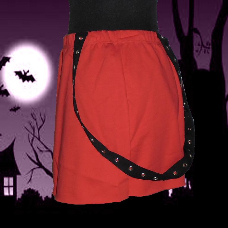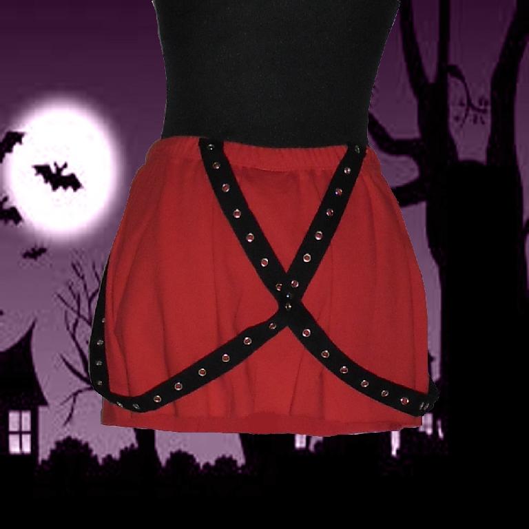 Folter, Suspender Red Mini Skirt with Black StrapsSizingSmallWaist = 34cm, Hips = 44cm, Full Length = 32cmMediumWaist = 36cm, Hips = 46cm, Full Length = 32cmAll measurements are approximate